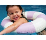 Denna randiga badring är lika mycket ett snyggt inslag vid poolkanten som en praktisk följeslagare i vattnet.