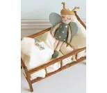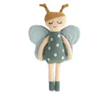 En kul ekologisk trasdocka klädd som en fjäril i en sjögrön klänning med vita prickar samt sjögröna vingar och roliga antenner på huvudet. Alla kläder är fastsydda och den leende dockan bara längtar efter att få fladdra omkring och ha kul hemma hos dig. Tillverkad i 100% ekologisk bomull med broderade detaljer och fylld med OEKO-TEX certifierad polyester. Tvättas i 30°C skontvätt och hängtorkas.
