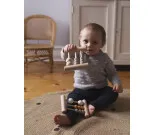 En snygg liten kulram i trä, ljusrosa och ljusblått, med tre rader kulor i olika storlekar. Rolig för de små att pilla med, skaka på för att höra ljudet, rulla över golvet och allmänt ha kul med medan de utvecklar sin motorik. Tillverkad av FSC®️ certifierat trä.