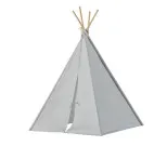 Tipitält i grå textil och trä. Tältet är lätt att sätta upp och att ta ned. Tyget är tvättbart. 110*110*160cm.