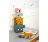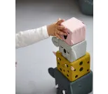 Underbara och roliga stapelblock i tyg från Roommate med 4 olika djur som kan hittas i djungeln - elefant, giraff, koala och flamingo. Blocken är mjuka nog att tryckas ihop om du råkar trampa på dem eller babyn råkar ramla över dem, men fasta nog att staplas utan problem. Tillverkade i 100% ekologisk bomull med broderad och fastsydd design, över polyuretan block. Testade för skadliga ämnen. Torkas av med fuktad trasa vid behov.