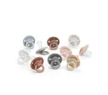 Skölden har dubbla ventilationshål och en lätt utåtböjd form som gör att luft hela tiden cirkulerar runt ditt barns mun och hjälper till att undvika hudirritation. Napparna innehåller inga ftalater, BPA eller PVC och är testade och godkända enligt den europeiska säkerhetsstandarden för nappar – EN:1400. Kompletta användarinstruktioner bifogas.
