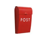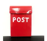 Postlåda i plåt. Röd/vit text. 17*7*24 cm.