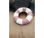 Denna randiga badring är lika mycket ett snyggt inslag vid poolkanten som en praktisk följeslagare i vattnet.