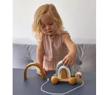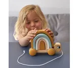 En rolig leksak av trä som kombinerar ett dragdjur och roligt formade stapelklossar i olika färger. Perfekt gåva till den nyfödda, babyshowern eller dopet.