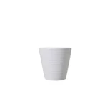 En liten vit kruka med enkel design, idealisk för mindre växter och som ett dekorativt inslag i hemmet.