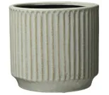 Krukan Elga är ljusblå och kommer från svenska Wikholm Form. Krukan är randig och tillverkad av stengods.