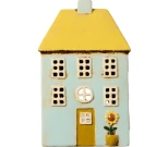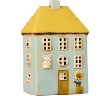 Ett charmigt ljushus i keramik från IB Laursen i en livfull design! Huset har en härlig turkos fasad med ett varmt gult tak som ger det en solig och inbjudande känsla. Vid den gula dörren finns en handmålad solros som tillför en extra touch av somrig glädje. Perfekt som en ljuslykta för värmeljus eller som en dekorativ detalj som skapar en mysig stämning i ditt hem. Passar lika bra på en fönsterbräda som på ett bord eller en hylla.