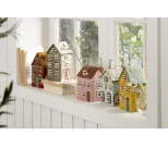 Detta keramikhus är en del av Thorshavn-husserien. De fina Thorshavn-husen är inspirerade av de färgglada, träklädda husen som finns i staden Thorshavn på Färöarna. Huset kan stå ensamt eller placeras tillsammans med fler hus för att skapa ett litet grannskap. Thorshavn-husen sprider en härlig atmosfär var de än placeras, och när ett tänd fyrfadsljus sätts in kan du njuta av det mysiga ljuset som lyser genom de små fönstren. Det finns alltid en viss oförutsägbarhet i glaseringen av keramik, och under bränningen kommer färgerna till liv. Det är just det som ger husen deras unika och originella uttryck med små färgskillnader och rustika kanter.