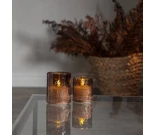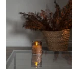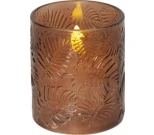 LED-blockljus i äkta vax erbjuder både säkerhet och elegans. Med en realistisk flammande effekt skapar det en varm och inbjudande atmosfär utan risk för öppen eld. Blockljuset har en stilren glasbehållare som pryds med ett vackert lövmönster. Perfekt till vardag som fest och tack vare LED-tekniken kan du njuta av ljuset länge.