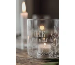Finish klarglas | borosilikatglas med matt vit text