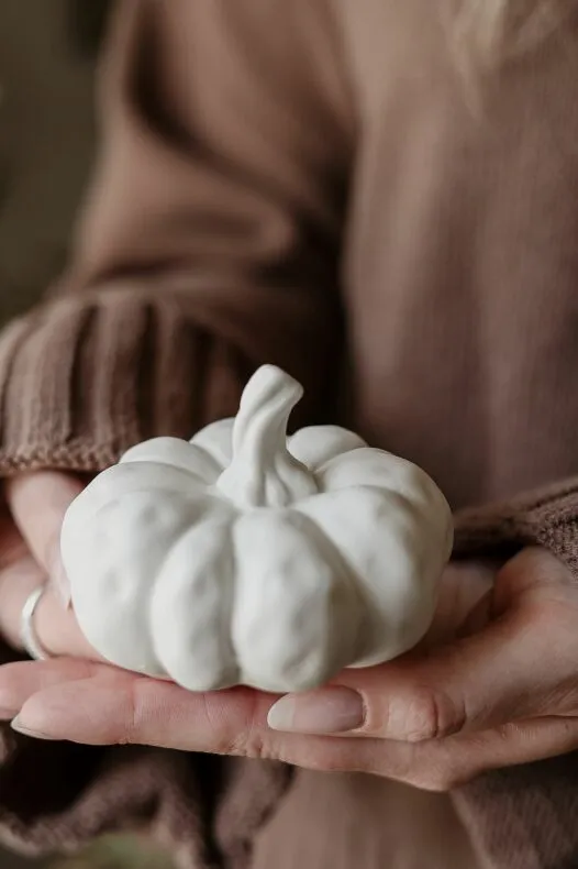 Skapa en varm och inbjudande höstkänsla i ditt hem med denna vackra vita keramikpumpa. En stilren inredningsdetalj som passar lika bra i vardagsrummet som i hallen, på matbordet eller som en del av en större höstdukning.