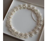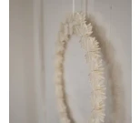 Kransen är tillverkad i papper, vilket gör den både lätt och enkel att hänga upp. Dess skira uttryck smälter fint in i allt från minimalistiska till mer traditionella julmiljöer.