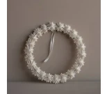 Denna vackra papperskrans från DBKD är formad av utskurna snöflingor som tillsammans bildar en luftig, vintrig dekoration i klassiskt vitt. Ø 35cm.