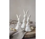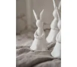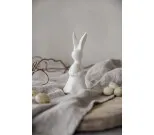 Söt påskhare med ägg i vit matt keramik från svenska tillverkaren Majas Cottage. Passar bra som ensam påskdekoration eller tillsammans med flera. 5 X 5 X 12 cm.