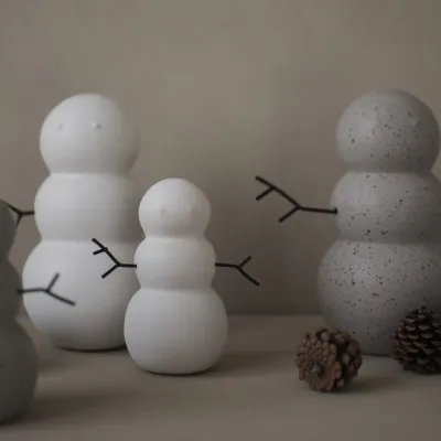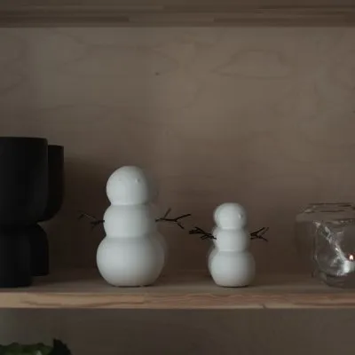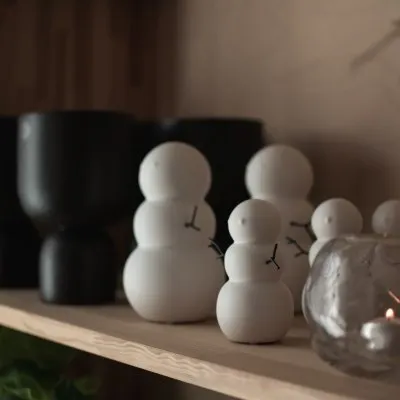 Placera snögubben i fönstret, på hyllan eller som en del av ett vinterstilleben tillsammans med ljus, granar eller andra figurer från DBKD:s kollektion. En dekorationsdetalj som sprider både värme och vinterkänsla.