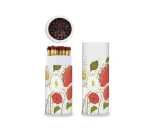 Denna storleken kallar vi för rund och mäter 112 mm hög och 40 mm i diameter. Den innehåller ca 45 tändstickor som är 95 mm långa.