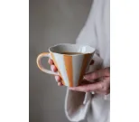 Ljuvlig mugg med handstompat mönster i glada härliga färger