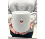 Bruka Designs söta vita mugg med präglat rött hjärta från Bruka Design. Finns även med vitt hjärta.