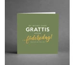 Kortet har en grön bakgrund med texten "Ett mycket stort grattis på din födelsedag. Idag är det din dag". Kortet är dubbelvikt och tillverkat i Sverige av högkvalitativt, miljövänligt papper. Ytan på pappret är matt som gör det enkelt att skriva en personlig hälsning inuti.