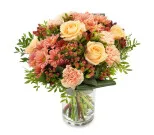 Notera: När du väljer denna bukett, binder vi den vackraste buketten av de blommor som för tillfället finns tillgängliga. Avvikelser från buketten på bilden kan förekomma. Om du har önskemål på din bukett, till exempel på blommor som du vet att mottagaren blir extra glad av eller blommor ni inte önskar ska ingå, skriv dina önskemål i kassans kommentarsfält. Vi tillgodoser dina önskemål i mån av möjlighet.