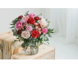 Notera: När du väljer bukett i vår webbshop, binder vi den vackraste buketten av de blommor som för tillfället finns tillgängliga. Avvikelser från buketten på bilden kan förekomma.