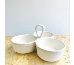 Om du vill lägga till elegans och mångsidighet till serveringen är denna tredelade vita serveringsskål från Capri-serien från Bruka Design det perfekta valet. Det skapar en elegant och attraktiv look på ditt matbord och erbjuder många möjligheter att visa upp delikatesser.