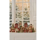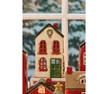 Denna charmiga ljuslykta i form av ett litet hus i beige färg sprider både ljus och stämning. Med sina fina detaljer som den gröna dörren och dörrkransen, blir den ett härligt inslag i juldekorationerna. Placera ett värmeljus inuti och se hur fönstren lyser upp som ett riktigt julhem.