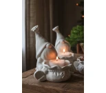 Den sittande tomten håller en säck som kan användas som ljuslykta eller för att fylla med nötter, godis eller små dekorationer. Perfekt på bordet, i fönstret eller på en hylla tillsammans med granris och julbelysning.