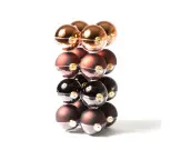 Joulukoristeita 16 kappaleen pakkauksessa, jotka sisältävät kiiltäviä ja mattaisia palloja ruskean eri sävyissä.