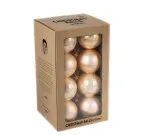 Joulukoristeita 16 kappaleen pakkauksessa, jotka sisältävät kiiltäviä ja mattaisia palloja champanjan eri sävyissä.