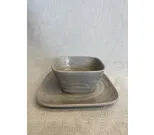 Harmaa keraaminen lautanen, neliönmuotoinen
