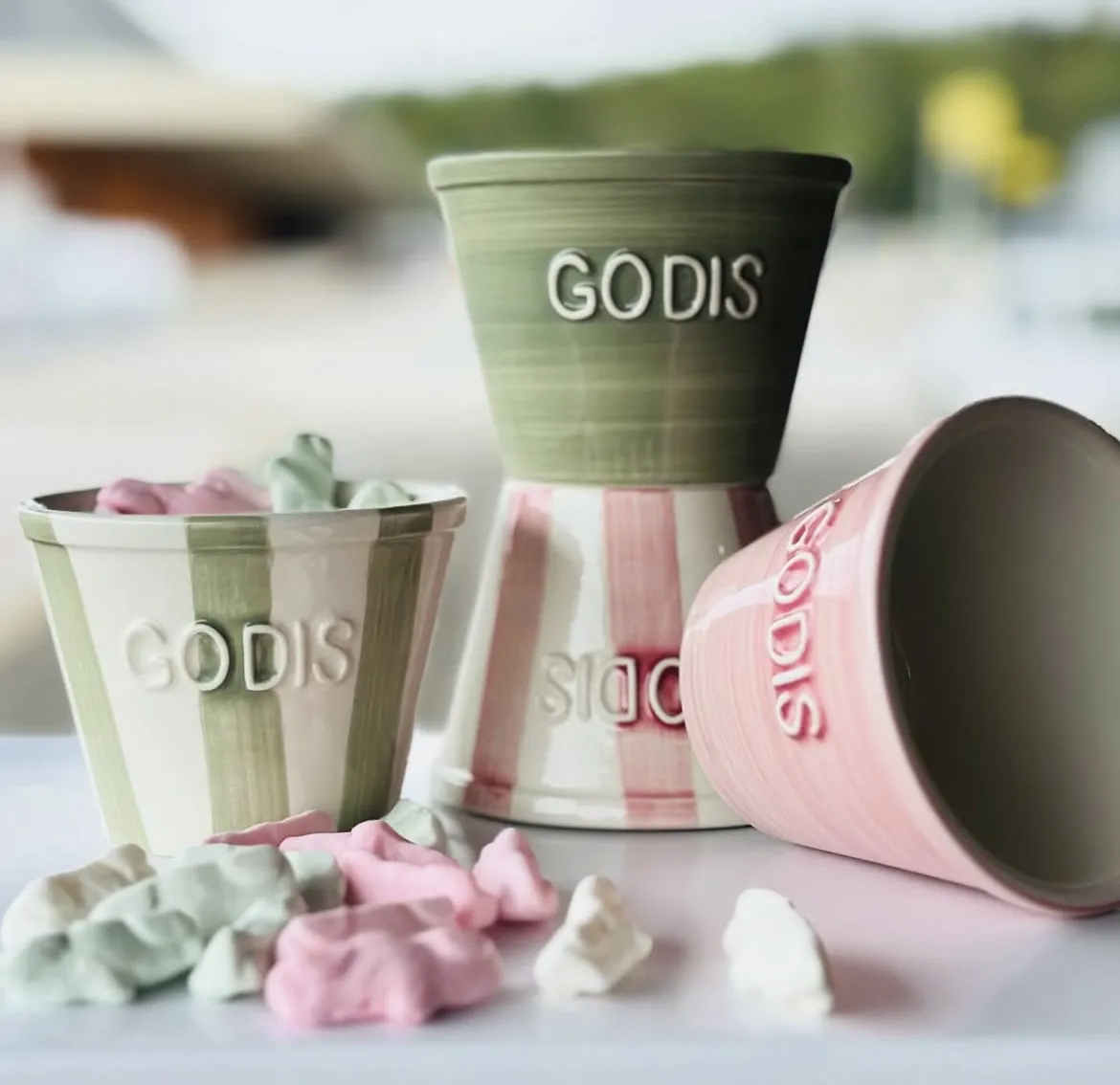 Tee herkutteluhetkistäsi entistä ihanampia tällä Sage-värisellä karkkikulholla! Tyylikäs ja ajaton kulho on valmistettu kestävästä, lasitetusta keramiikasta ja siinä on kohoteksti “GODIS” edessä – pieni yksityiskohta, joka tuo hymyä jokaiseen pöytään.