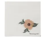 Valkoinen lautasliina kukkakuviolla