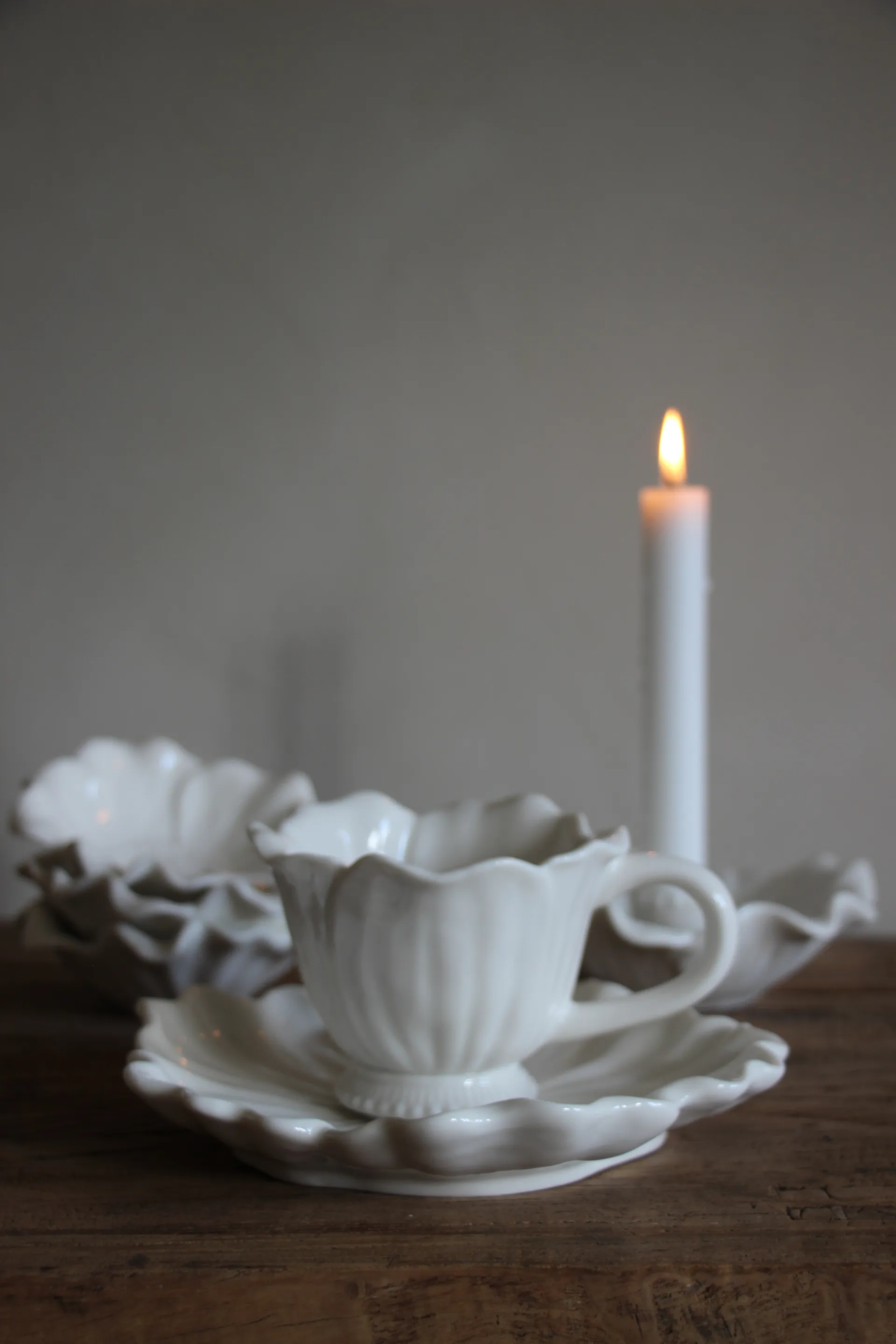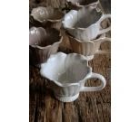 Majas Blomstra - valkoinen muki on elegantti kukkamuotoinen muki, jossa on pehmeä, kiiltävä lasitus. Kaunis yksityiskohta keittiöön, sopii yhtä hyvin aamukahville kuin rentoihin teehetkiin.
