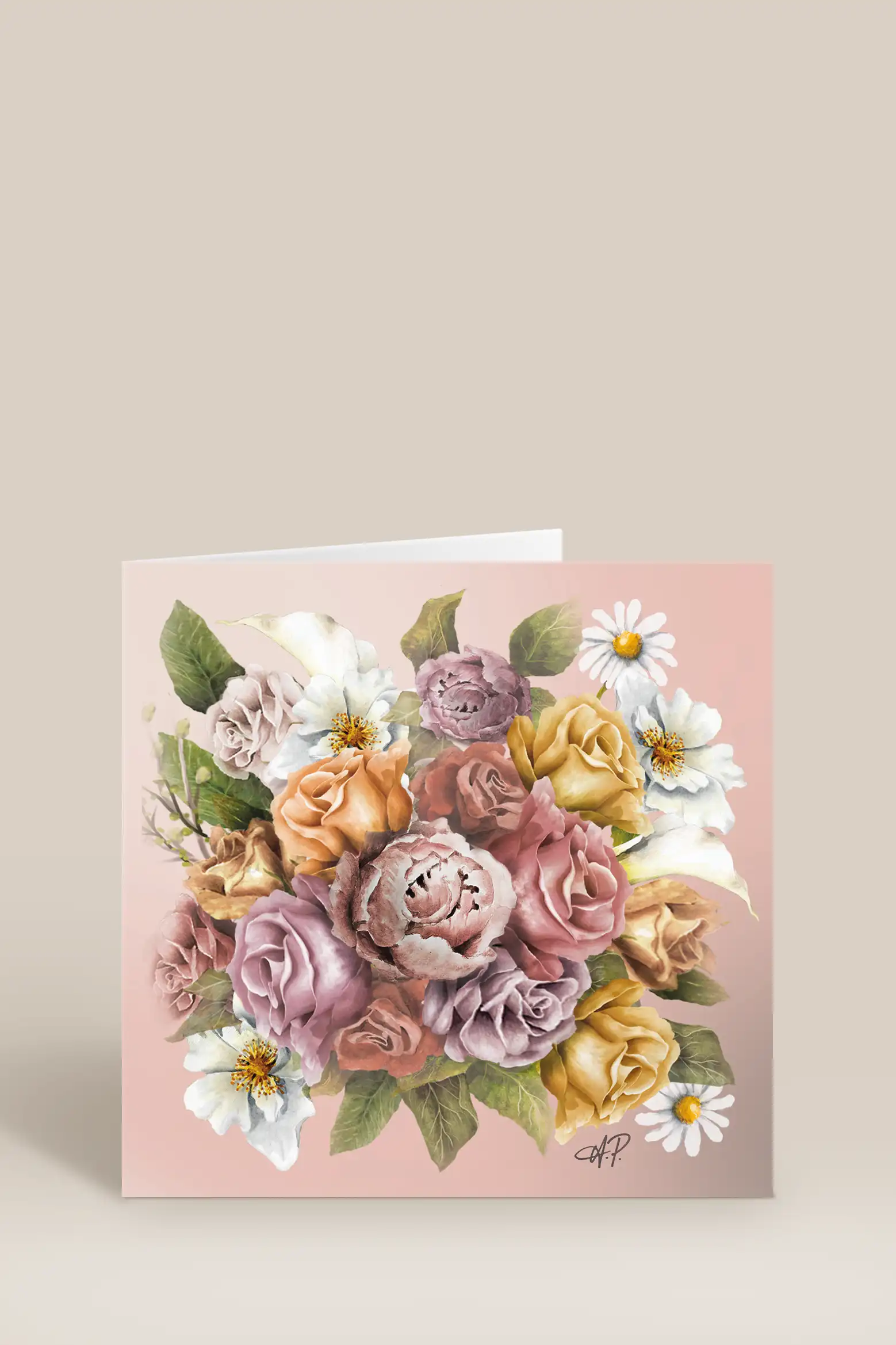 Tyylikäs kortti, jossa kukkakimppu ja vanhanroosan sävyinen tausta. Valmistettu Ruotsissa korkealaatuisesta ja ympäristöystävällisestä paperista. Sopii erinomaisesti syntymäpäiviin, häihin tai muihin juhlatilaisuuksiin, kun haluat antaa lahjallesi henkilökohtaisen ja viimeistellyn ilmeen.