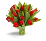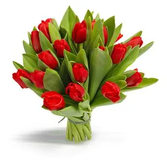 Skapa en stämningsfull julkänsla med denna vackra och enkla bukett närodlade vackra röda tulpaner.