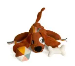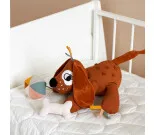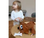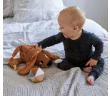 Hauska ekologinen aktiviteettilelu, joka on muotoiltu pehmeäksi koiraksi ja jossa kuuluu erilaisia ääniä ja sen eri osat tuntuvat hauskoilta sormenpäissä. Aktiviteettikoira on testattu ja Oeko-Tex®️ -sertifioitu, ja se on valmistettu ekologisesta puuvillakankaasta ja täytetty polyesterikuidulla. Puhdistetaan kostealla liinalla tarvittaessa, sillä esimerkiksi kulkunen ja vastaavat toiminnot eivät kestä pesua.