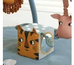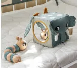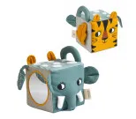 Kaunis ja hauska ekologinen aktiviteettikuutio, jossa on viidakon eläinten teema ja joka tarjoaa vauvalle monia erilaisia asioita tunnusteltavaksi ja katseltavaksi, kuten pieni pyöreä peili, kohotettuja rakenteita ja rapisevia ääniä. Valmistettu polyuretaanilohkosta, joka on päällystetty ekologisella puuvillakankaalla, jossa on painettu ja kirjailtu design, sekä kevyesti polyesteritäytettynä. Pestään hellävaraisesti 30°C:ssa ja ripustetaan kuivumaan tarvittaessa.