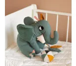 Hauska ekologinen aktiviteettilelu, joka on muotoiltu pehmeäksi merenvihreäksi elefantiksi ja jossa kuuluu erilaisia ääniä ja sen eri osat tuntuvat hauskoilta sormenpäissä. Aktiviteettielefantti on testattu ja Oeko-Tex®️ -sertifioitu, ja se on valmistettu ekologisesta puuvillakankaasta ja täytetty polyesterikuidulla. Puhdistetaan kostealla liinalla tarvittaessa, sillä esimerkiksi kulkunen ja vastaavat toiminnot eivät kestä pesua.
