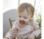 Materiaali: 30% bambua, 70% olefiinipolymeeri, imutekijä: 100% lateksi Sertifikaatit: BS EN 1400: 2013 + A1:2014 Leveys: 5,7 cm Korkeus: 3,5 cm Tuotenumero: 30105105155NA Koko: 3+ kuukautta