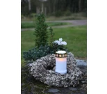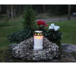 Kestävä LED-hautavalo muistopaikoille. Valon lämmin hehku palaa turvallisesti säästä riippumatta. LED-valossa on ajastintoiminto, jonka paloaika on 6 tuntia ja sammuu automaattisesti