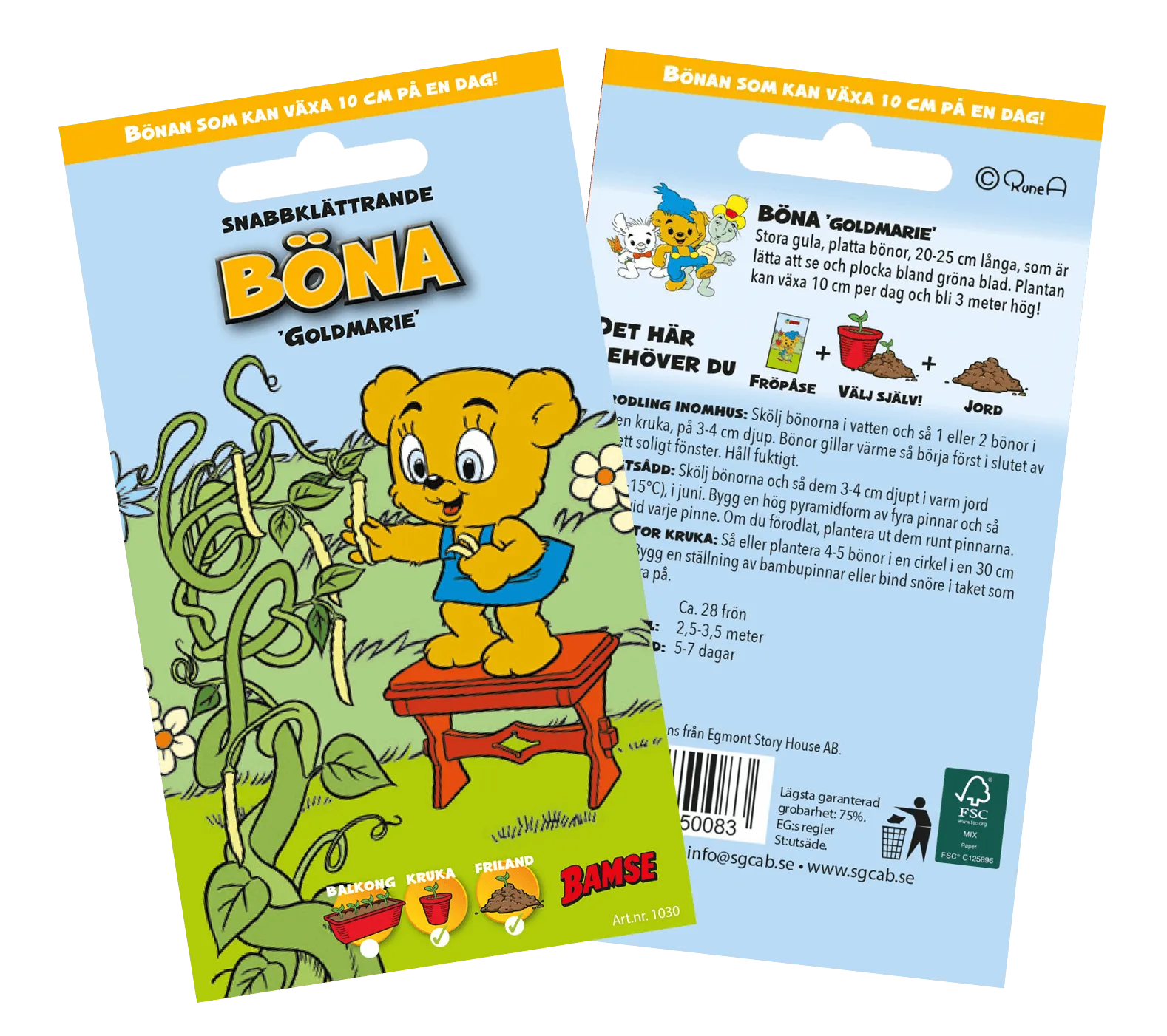 Viljele Bamsen kanssa ja koe viljelyn ilo! Salkopapu "Goldmarie" on nopeasti kasvava lajike, joka tuottaa runsaasti pitkiä, kauniin keltaisia ja rapeita palkoja, joissa on mieto ja herkullinen maku.