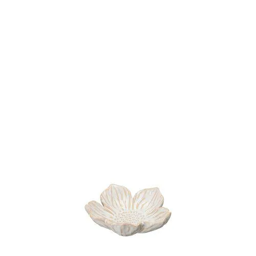 Kaunis kukkamuotoinen tarjoiluvati offwhite-posliinista. Ajaton ja elegantti yksityiskohta kattaukseen ja kodin sisustukseen. Koko 10x3 cm