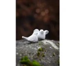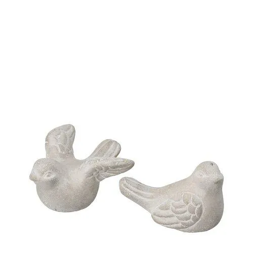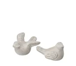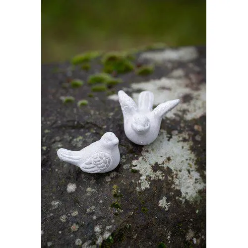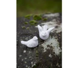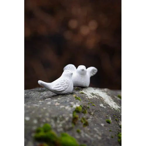 Tyylikäs harmaa betoninen lintusetti, jossa kaksi koristeellista pikkulintua. Ajaton yksityiskohta kotiin, puutarhaan tai muistopaikalle. 10x9x6 ja 9x5x6cm.