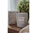 Tässä Majas Cottagen kauniissa kynttilälyhdyssä lukee ”Sydämellinen kiitos kaikesta pienestä ja suuresta” – lämmin viesti, joka koskettaa joka kerta, kun kynttilä sytytetään.