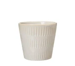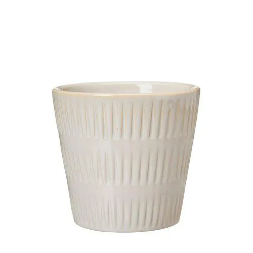 Stilfull kruka i stengods med dekorativt mönster i varm vit nyans. En vacker inredningsdetalj som lyfter både gröna växter och blommande arrangemang. 10x9 cm Ø 9 cm.