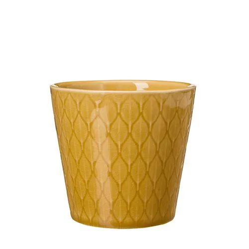 Koristeellinen kivitavararuukku, jossa on kaunis kuvio ja lämmin keltainen väri. Tuo pehmeää ilmettä ja persoonallisuutta sisustukseen. 10x9 cm Ø 9 cm.