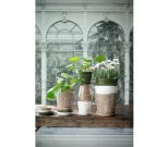 Frances-ruukku aluslautasella Wikholm Formilta on ajaton ja tyylikäs kukkaruukku dolomiitista. Pehmeä valkoinen sävy ja koristeellinen helmimäinen reunus tuovat ruukkuun hienostuneen ja viimeistellyn ilmeen, joka sopii monenlaiseen sisustukseen.