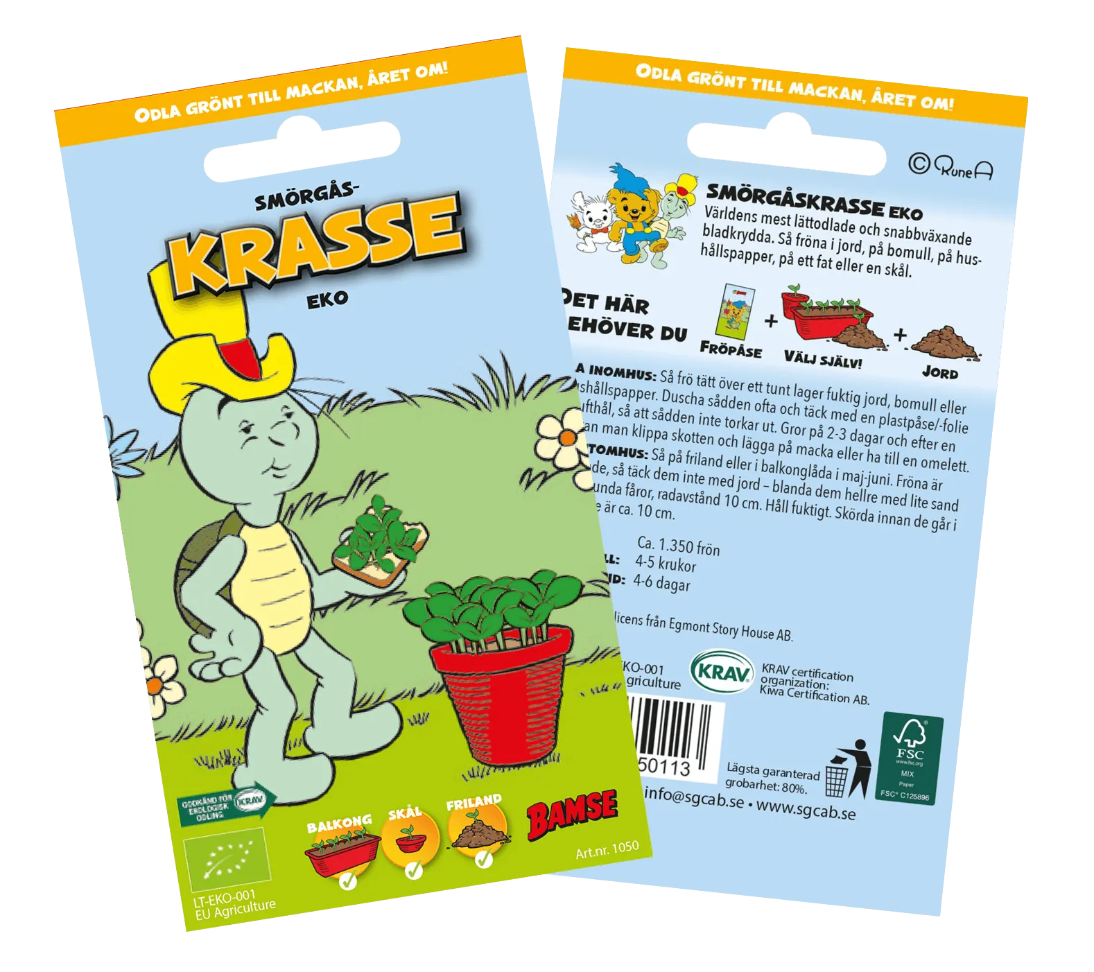 Viljele Bamsen kanssa ja nauti tuoreista vihreistä ympäri vuoden! Luomu krassi on erittäin nopeasti kasvava yrtti, joka tuottaa pieniä, vihreitä versoja, joissa on raikas ja hieman pippurinen maku.